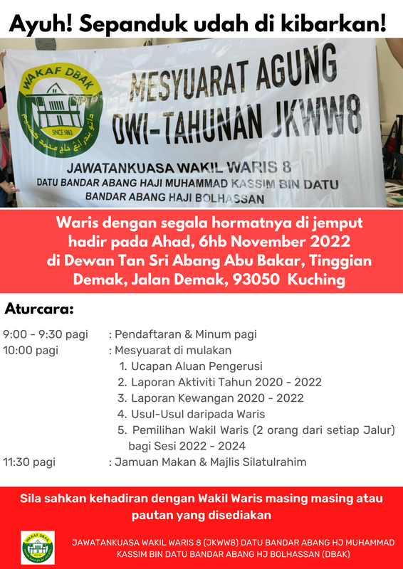 - Majlis Memperingati 100 tahun Wasiat DBAK Capaian ke Facebook Group 'Waris Rumah Batu (Jalan Datuk Ajibah Abol)'