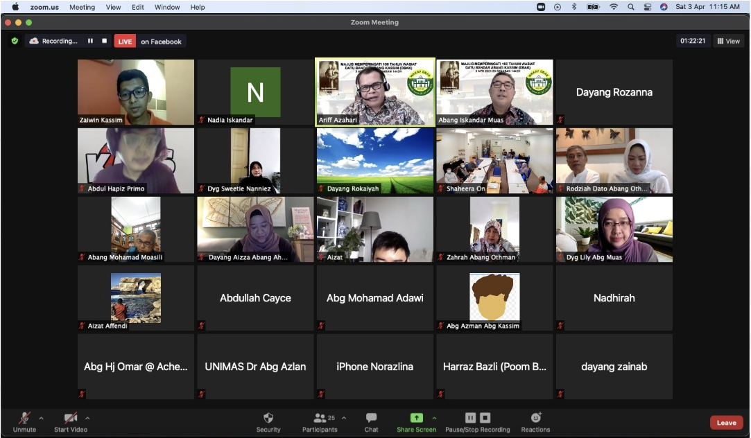 1) MESYUARAT EXCO MELALUI ZOOM 2) MAJLIS MEMPERINGATI 100 TAHUN WASIAT DBAK 3 APR 2021
