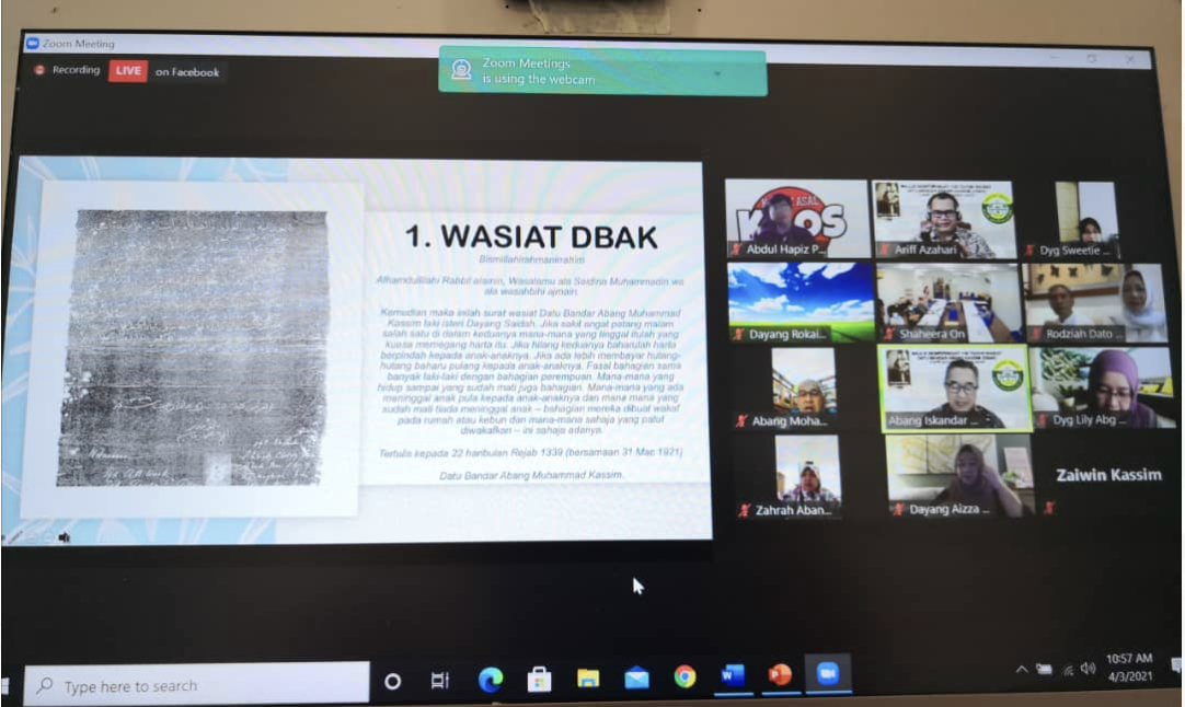Pembentangan Pengerusi di Majlis 100 tahun wasiat DBAK (3/4/2021)